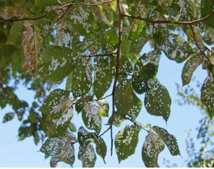 Elm leaf beetle damage on a beautiful american elm tree