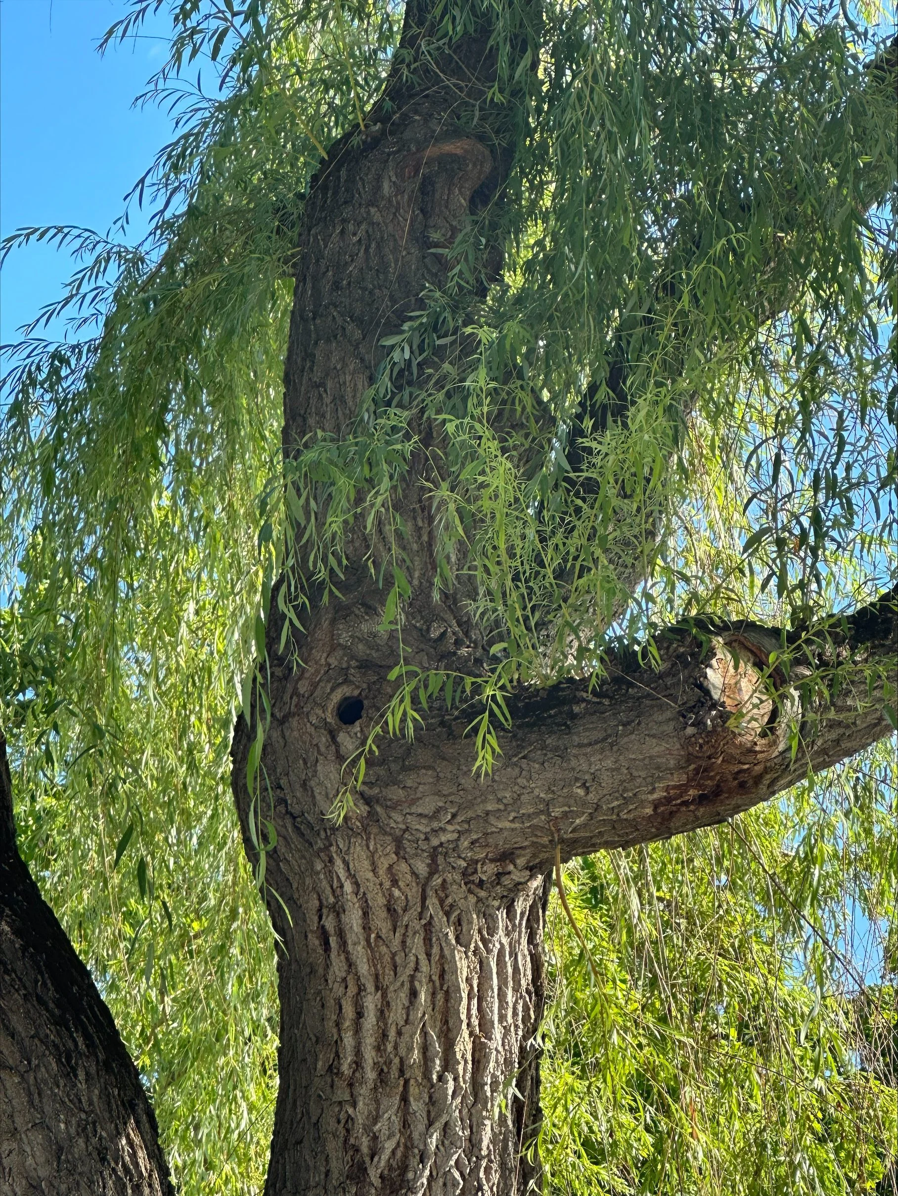 A cavity in this weeping willow indicates a potential structural issue