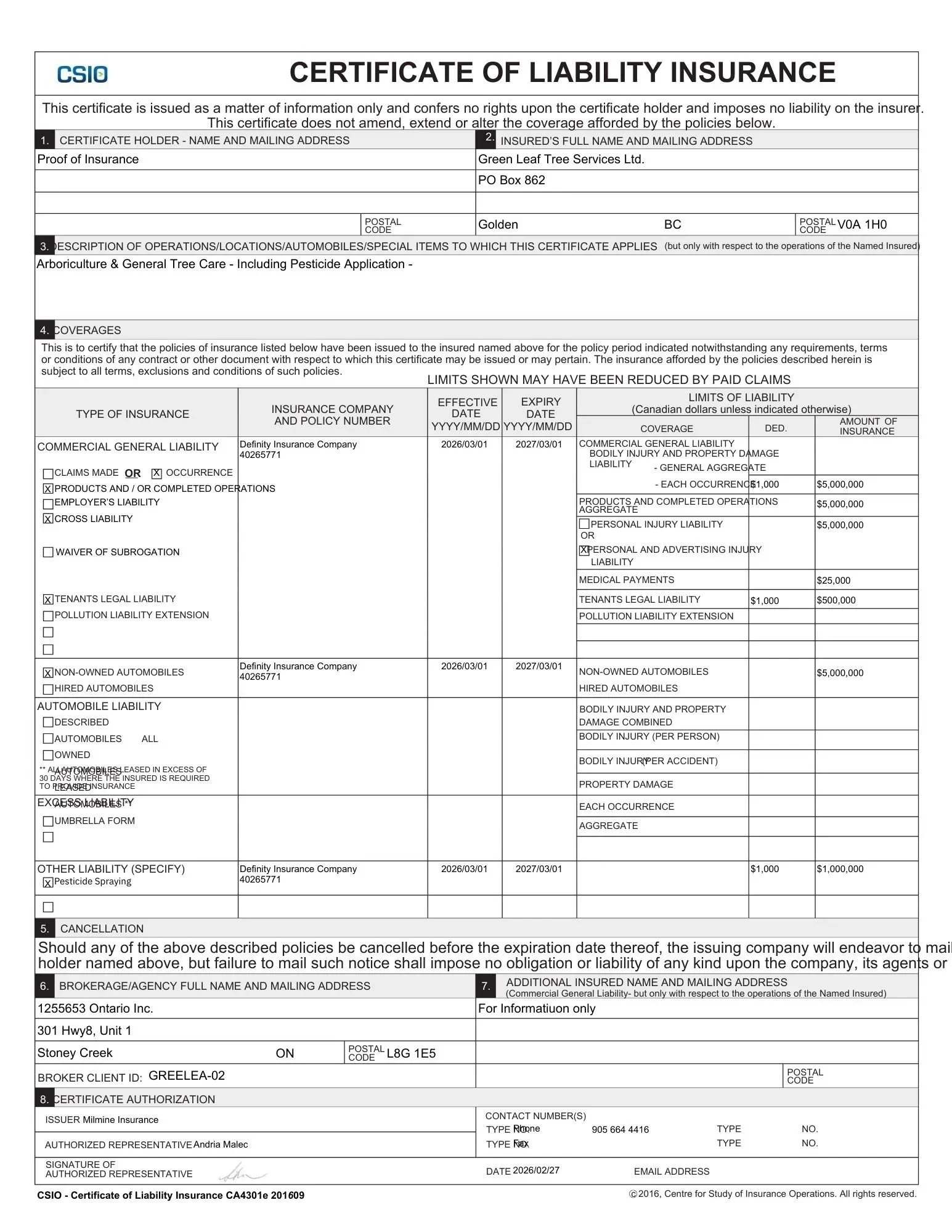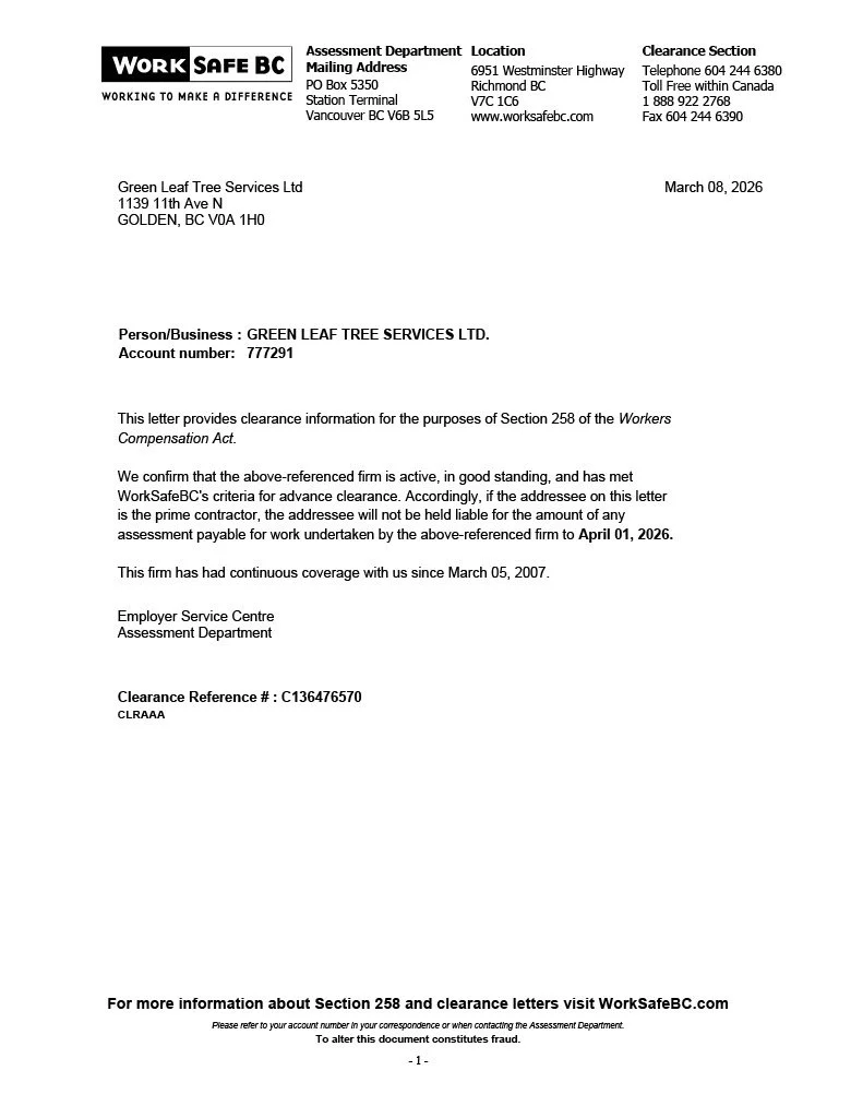 Tree work is extremely dangerous work and we are committed to raising the bar when it comes to the level of training, certifications, insurance coverage and WCB compliance. For your peace of mind we carry specifically tailored insurance coverage to protect you and your property from liability. We carry Workers Compensation and we invest into and follow a rigorous safety program to foster a safe work environment and to look after our staff. BEWARE of companies that don’t offer these assurances as it leaves you exposed and liable for injuries, damage and potential death on your property.